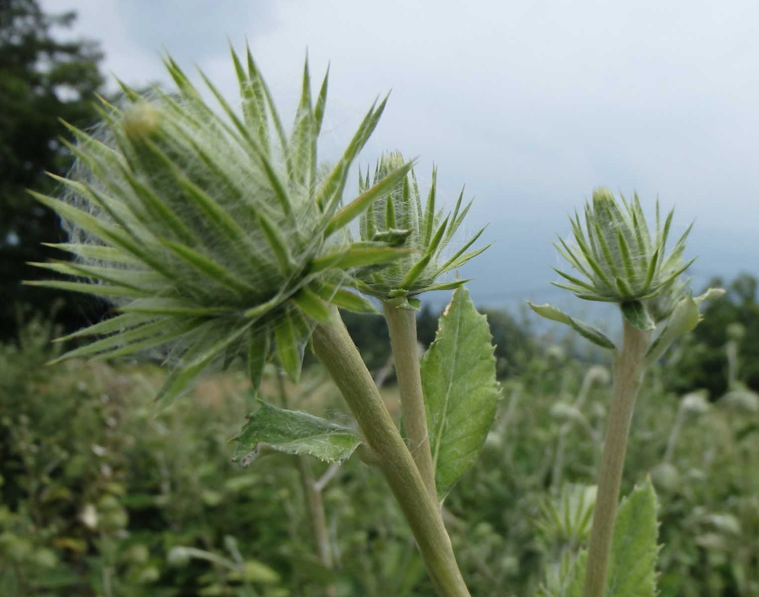 「オヤマボクチ」とはアザミの仲間で信州の山々に自生している野草です。アザミの花と同様に丸くチクチクするとげのある綺麗な紫色の花を咲かせます。つなぎに使用する葉は大きなもので長さ50センチ程になり、葉の裏側には白い綿毛がびっしりと生えています。この綿毛を丁寧に取り出しておそばのつなぎに使用するのです。